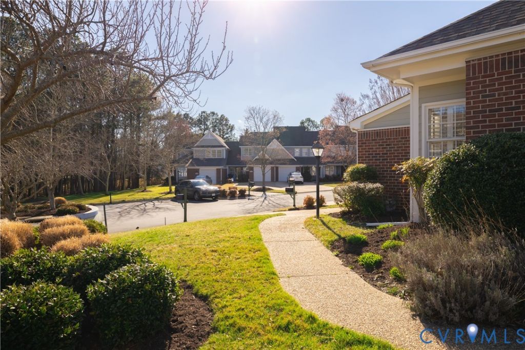 END-UNIT townhome in Morgan's Glen at Wyndham featuring a fantastic floor plan with a first-floor primary suite, freshly painted interior, renovated bathrooms, cathedral ceilings, gas fireplace, and a remodeled kitchen with MARBLE COUNTERTOPS, under-cabinet lighting, and UNDERFLOOR HEATING. Rare for this community, this home features an EXTENDED KITCHEN and breakfast nook, creating additional space for cooking and entertaining. Upstairs includes two generously sized bedrooms, a full bath, and a large loft ideal for a playroom, office, or lounge space, plus additional walk-in attic storage. Additional highlights include a direct-entry garage, California Closets in the primary bedroom, and large windows that fill the home with natural light. Major updates include kitchen remodel (2017), HVAC (2019), water heater (2021), and new refrigerator and washer/dryer (2024). Enjoy access to Wyndham's extensive amenities, including the Swim & Racquet Club, pickleball, and tennis courts, basketball courts, parks and playgrounds, and scenic walking trails, all just minutes from Short Pump shopping and dining.