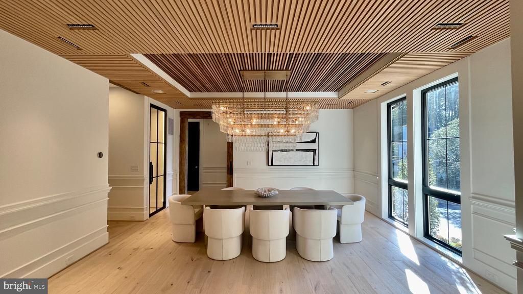 Introducing The Barn, a relaxed luxury by Artsy Homes, where timeless elegance blends effortlessly with refined comfort. A true expression of modern sophistication. From serene retreats in Washington, D.C. to countryside escapes reimagined in an urban setting, every detail of this home tells a story in the heart of Chesterbrook Woods, one of McLean’s premier neighborhoods. The exterior captivates with meticulous craftsmanship. Twelve-foot beams at the front entrance complement intricate stonework, while a grand Canadian maple Andersen door exudes striking presence. French gas lanterns paired with RH light fixtures add refined charm. A metal roof blends seamlessly with premium architectural shingles, and the façade combines stone with Shou Sugi Ban siding, accented by thoughtful landscaping that completes this cohesive architectural statement. At the heart of the home is a breathtaking thirty-foot-high lounge crowned with sixteen-foot windows, featuring a reclaimed roof rafter from 1847, salvaged from the last cotton mill of Virginia, that invites cascades of natural light throughout the day. The room, wrapped in century-old rugged heart pine and dark textured brick, carries a stillness that resonates deeply. Exposed roof rafters meticulously wrapped in birch wood add organic warmth to the soaring volume and create a space where serene grandeur meets quiet storytelling. Suspended above, the Arcachon Round brass chandelier anchors the room with rhythmic grace. Below, a custom-built fireplace framed by built-in bookshelves offers both intimacy and presence. The kitchen is an artful composition of form, light, and texture. A ten-foot brass-textured waterfall countertop exudes understated charm, while sun-filled windows invite the day’s shifting moods. The Fulcrum Pendant, with its hand-blown glass and brass, hovers sculpturally, casting a gentle glow. Limestone walls evoke the Tuscan countryside’s earthy timelessness. Chevron white oak floors, soft-toned cabinetry, and polished brass hardware from the Camden Collection, inspired by mid-century French and Italian design, blend quiet confidence with craftsmanship. Reclaimed beams paired with structural I-beams create a dialogue between history and modernity, making the kitchen a celebration of refined restraint and comfort. A slatted ceiling designed and constructed onsite guides you toward the dining area with a rhythm that feels intentional and fluid. There, a Tiered Rectangular Chandelier from the Marignan Collection, composed of more than one thousand crystal elements, takes center stage. Its interlocking formations float effortlessly, casting a shimmering cascade of light that fills the space with quiet drama. The Thaddeus Powder Room collection, inspired by the surreal artistry of Salvador Dalí and Diego Giacometti, features hand-forged metals, a bespoke custom sink, and refined fixtures that intertwine with effortless sophistication, resonating with the home’s cohesive aesthetic. (This offers just a glimpse of the main level, with even more to explore throughout the home.) At its core, Artsy Homes believes every house should tell a story, with each space unfolding as a meaningful chapter that endures over time, crafting environments that awaken reflection and wonder, where elegance and beauty invite you to slow down, breathe deeply, and embrace the true essence of feeling at home.