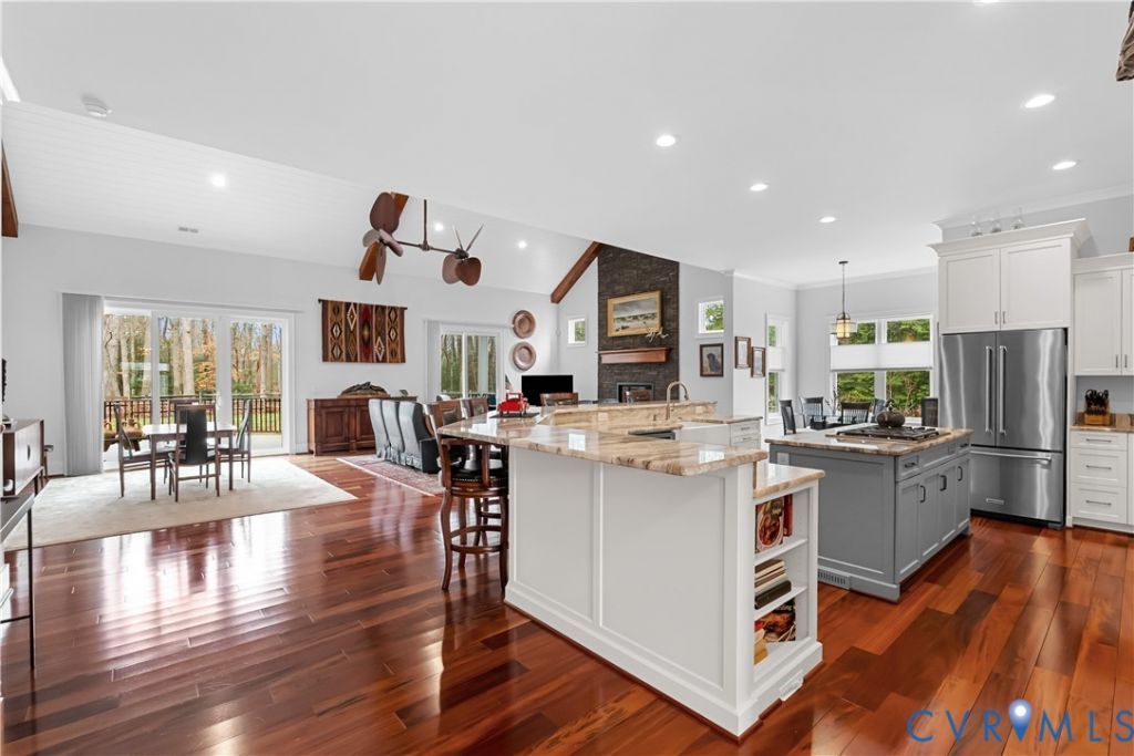 Welcome to this exceptional custom home in Barhamsville, privately situated on over 6 wooded acres in New Kent County. Designed with high-end finishes and impeccable craftsmanship throughout, this residence features exotic hardwood flooring, custom tile baths, and stunning architectural details.The expansive kitchen anchors the home and flows seamlessly into the family room with soaring vaulted ceilings, shiplap accents, and a cozy gas fireplace. The private first-level primary suite offers a true retreat with a spacious walk-in closet, double vanity, and oversized walk-in shower. A second first-floor bedroom with en-suite bath provides ideal space for guests or multi-generational living. Upstairs includes a dedicated office, flexible living spaces, an oversized bonus room above the three-car garage, private guest bedroom, and abundant walk-in storage. Enjoy a screened porch and oversized deck overlooking your private wooded oasis-perfect for relaxing or entertaining. Additional highlights include a whole-house generator and security system. Luxury, privacy, and space all in one.